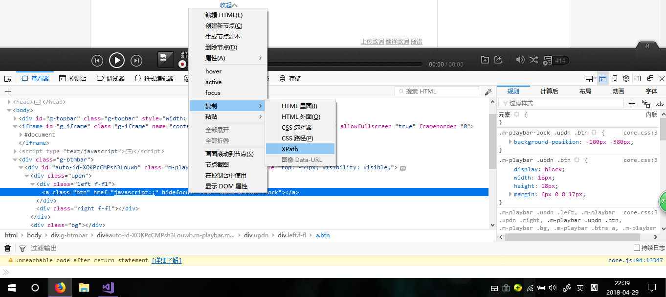 浏览器以火狐为例 打开所需网页,F12进入控制台 定位到所需元素,右键→复制→Xpath