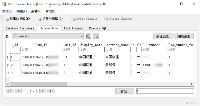 如今,我们对SIM卡取证的方法通常用的方法有两种。第一种方法是利用专门的读卡设备对SIM卡的数据进行提取。在这种方法中,只要读卡器只要符合ETSI(欧洲电信标准协会)TS31.101和TS51.011两种标准指令集就可以对SIM卡中的数据进行提取。此外另一种方法就是通过指令对SIM种数据进行直接提取。 一般情况来说Android手机的SIM卡使用记录一般保存在data分区的data\com.android.providers.telephony\databases\telephony.db文件中,该文件类型为SQLite数据库。数据库中的表“sim_info”会记录使用过的SIM卡的ICCID、手机号码等信息。